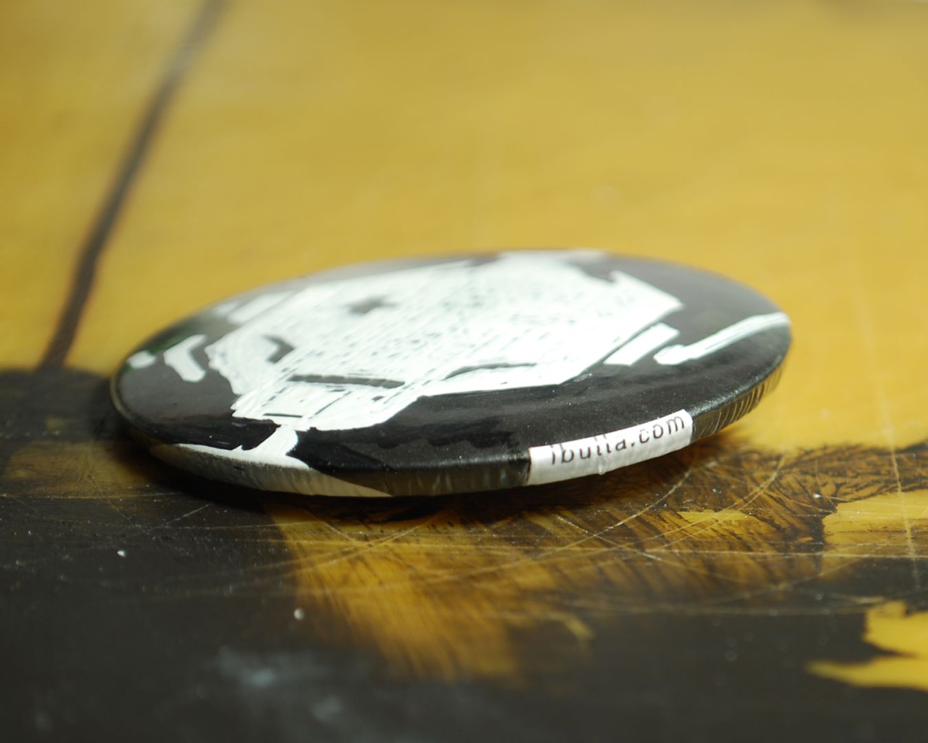 The circular cutouts function both as points of interruption in the original image and as tangible objects that extend beyond the flat plane of the paper. In doing so, they invite viewers to consider how artworks can move between contexts (from paper to a wearable format) and spaces (from a wall to a lapel, and back again). Through this process, the once “missing” fragment becomes a focal point, challenging the boundary between the ephemeral and the permanent in everyday visual culture.