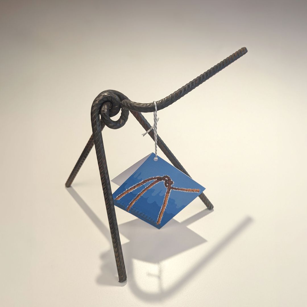 The work transforms rigid reinforcing bars into mobile sculptures that traverse the urban space and challenge physical and metaphorical barriers through their precarious, adaptable presence.