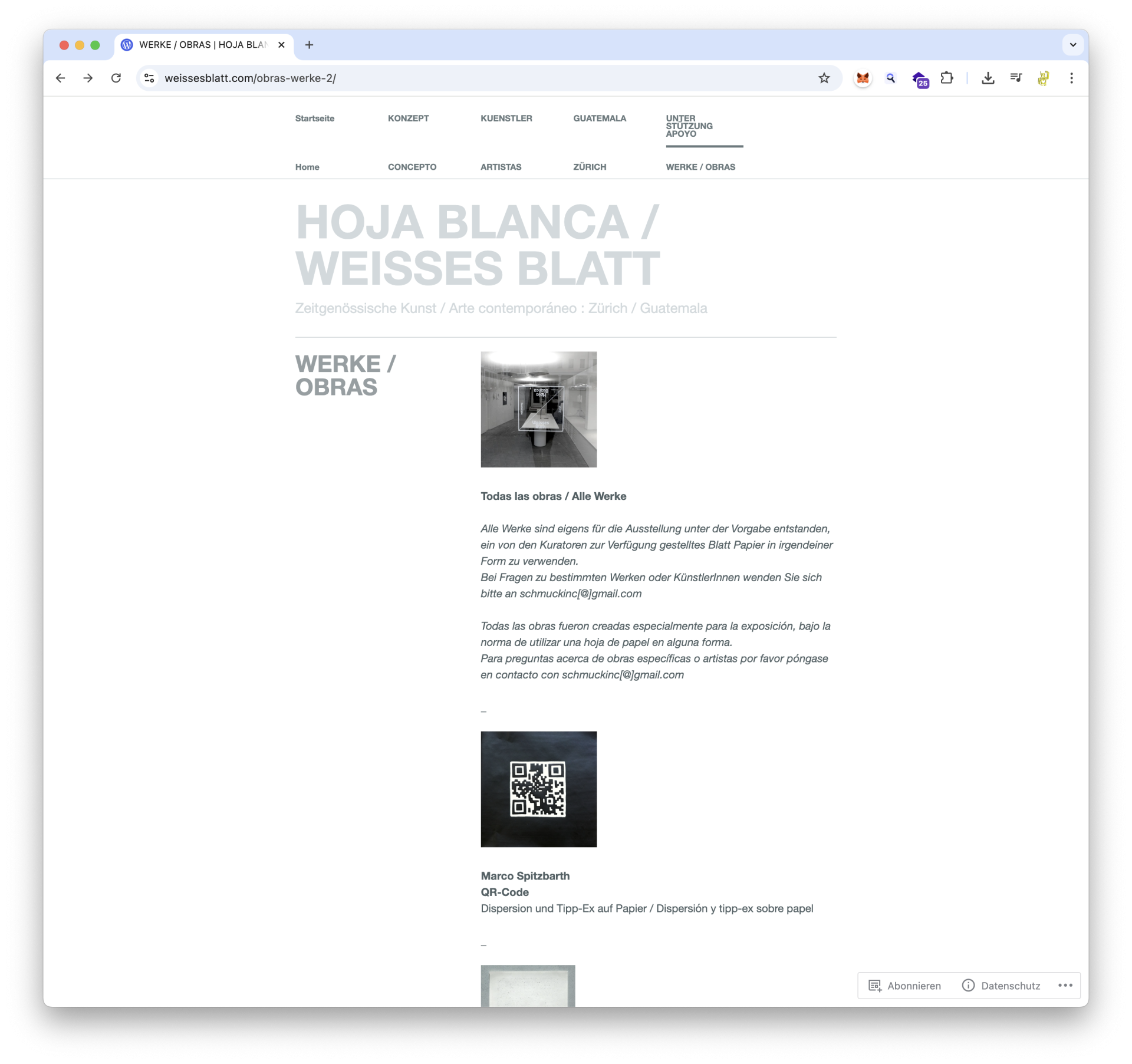 26 Künstler/innen aus Guatemala und der Schweiz präsentieren anonym neueste Werke aus einem weissen Blatt Papier: