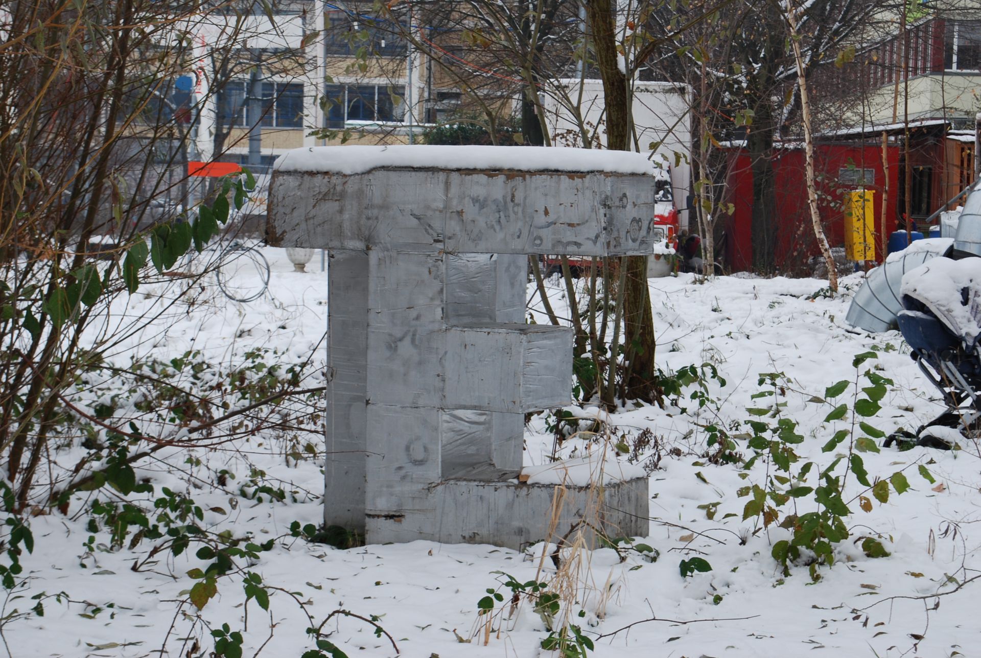 The work transforms rigid reinforcing bars into mobile sculptures that traverse the urban space and challenge physical and metaphorical barriers through their precarious, adaptable presence.