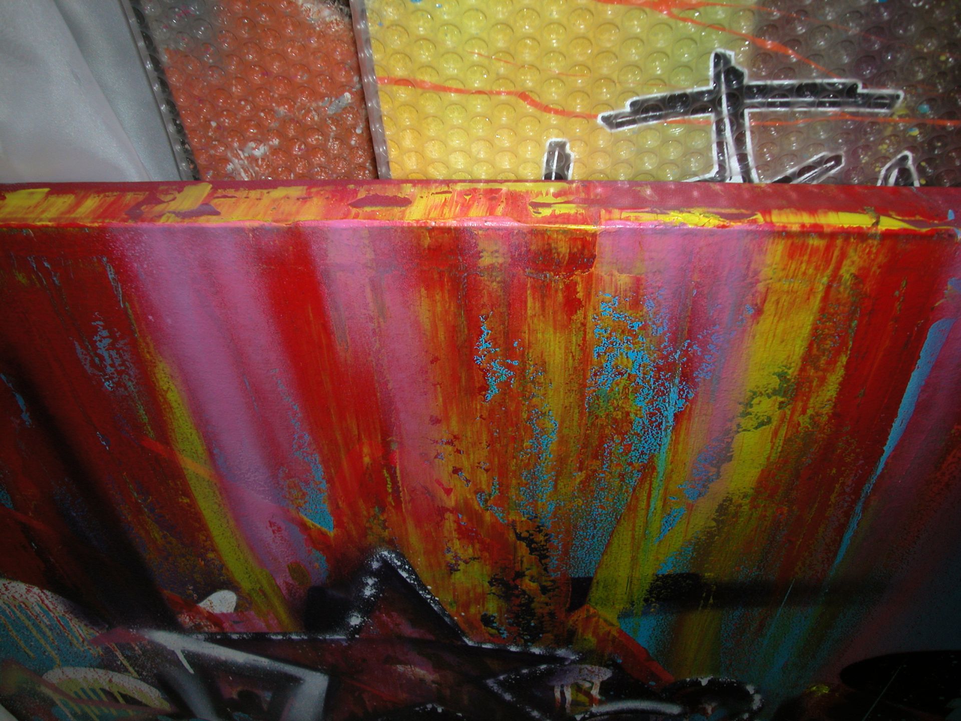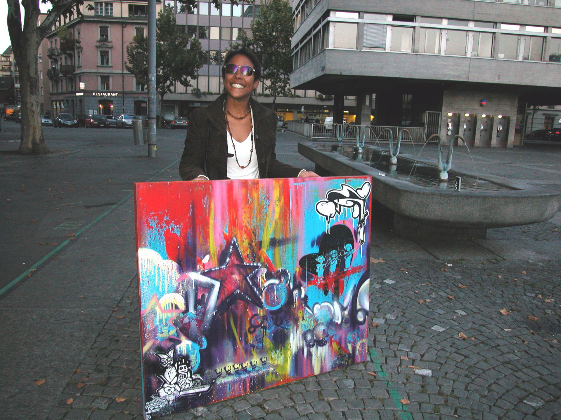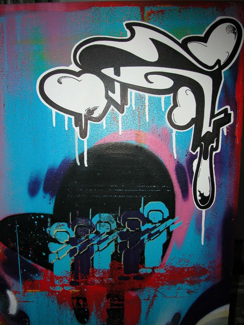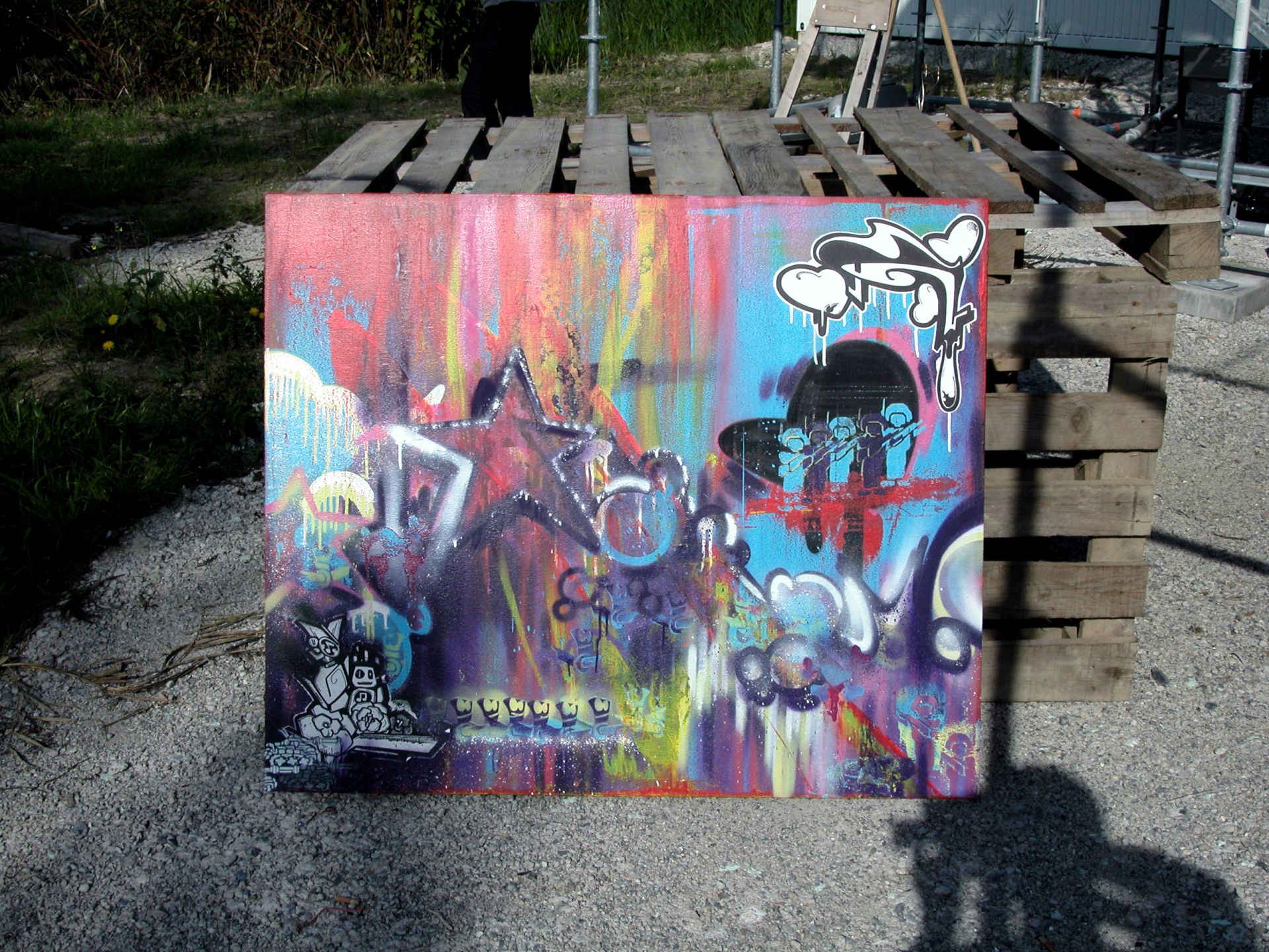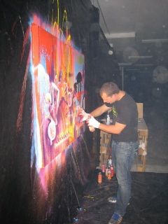 In 2009, I was invited to create a live painting at an electro party called “Tiefgang.” The pulsating beats, energetic crowd, and immersive atmosphere all infused the work with a sense of immediacy and raw spontaneity. Over the course of the night, I laid down lines, shapes, and colors in real time, responding intuitively to the music and the movement around me.