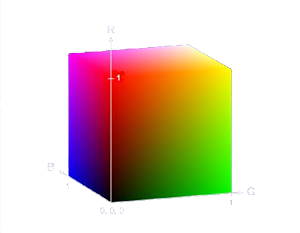 Das Farbspektrum entspricht der Hälfte eines aufgefallteten RGB-Würfels.